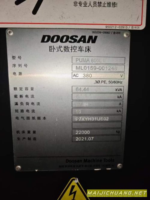 韩国原装斗山PUMA800L数控车床,主轴通.