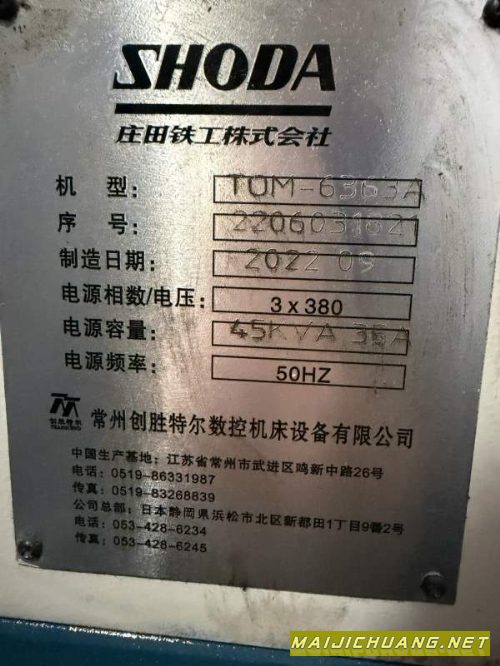 创胜特尔630卧式加工中心,2022年出厂.